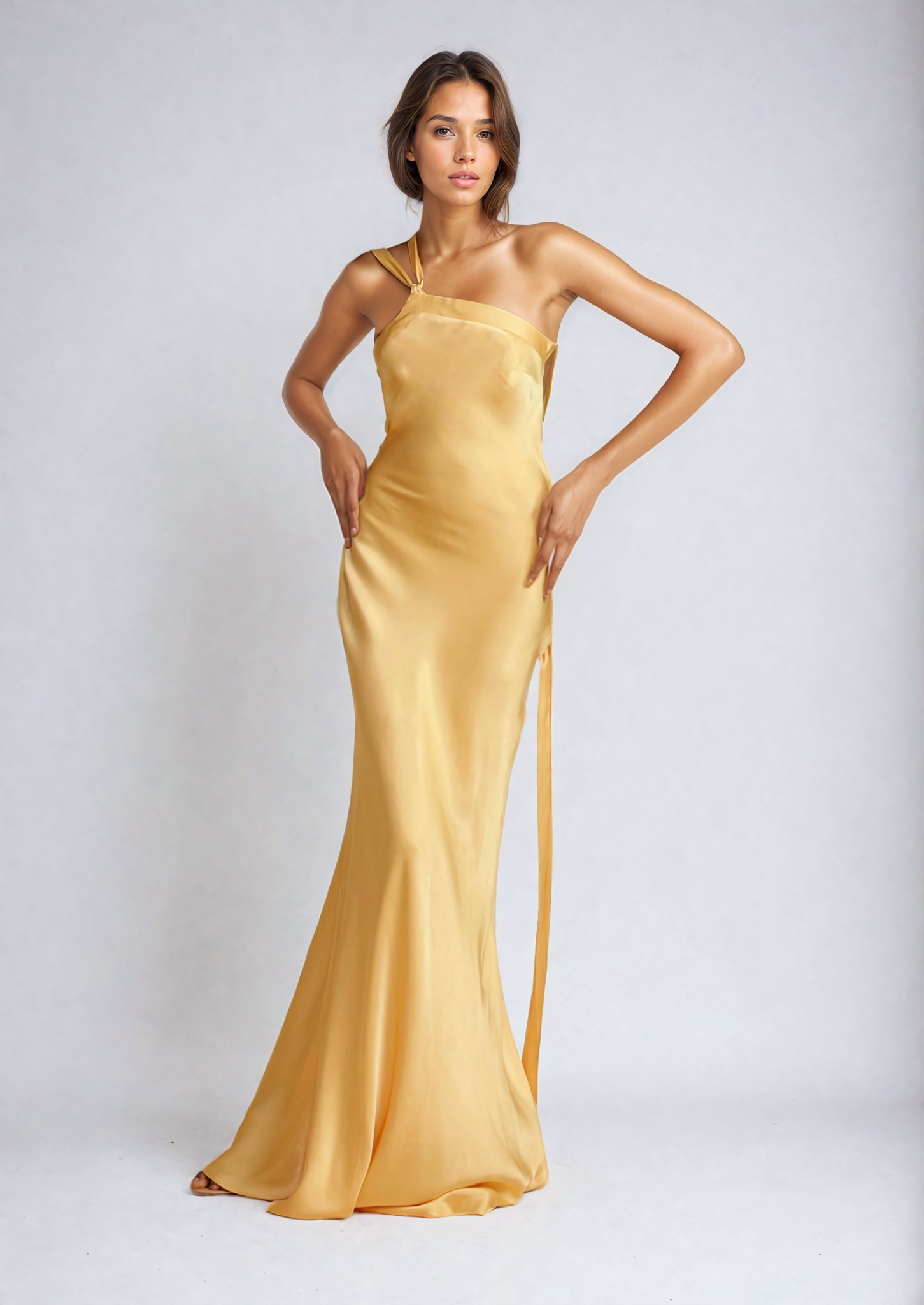 Realza tu presencia con Inés, un encantador vestido largo que representa la sofisticación moderna. Elaborado en un lujoso tono dorado, Inés está diseñado para realzar tu figura y provocar una sensación de seducción. Con un diseño de un solo hombro y una sugerente espalda descubierta, cuenta con detalles cruzados intrincados que acentúan la feminidad. El tirante cae con gracia sobre la espalda, abrochándose elegantemente en la cadera. Confeccionado para ofrecer tanto comodidad como elegancia, el diseño fluido de Inés se adapta sin esfuerzo del día a la noche, convirtiéndolo en la opción perfecta para cualquier ocasión elegante.